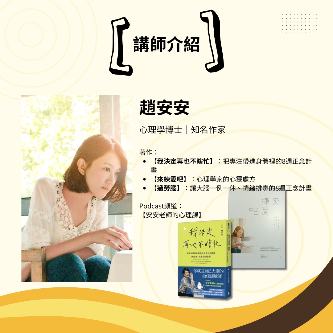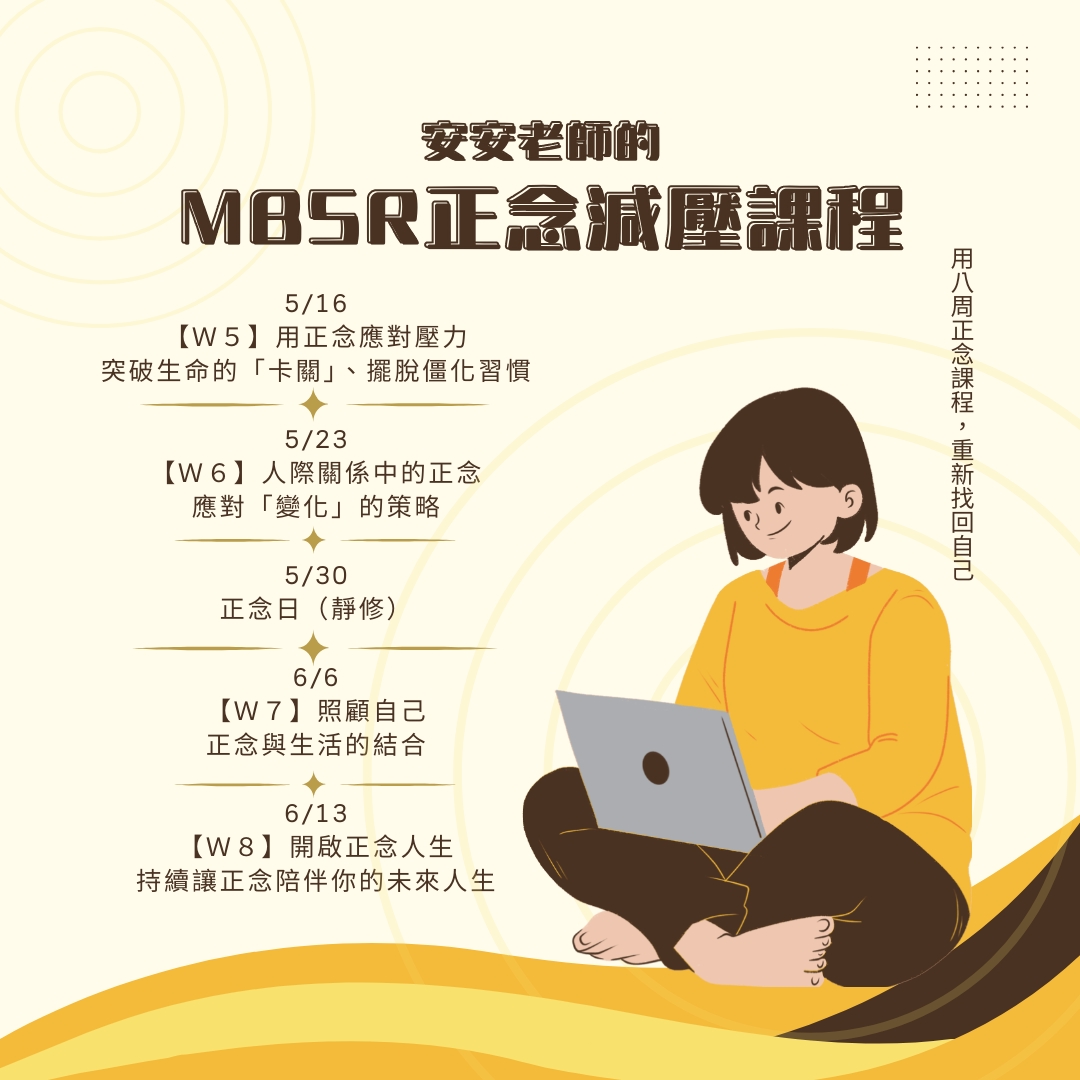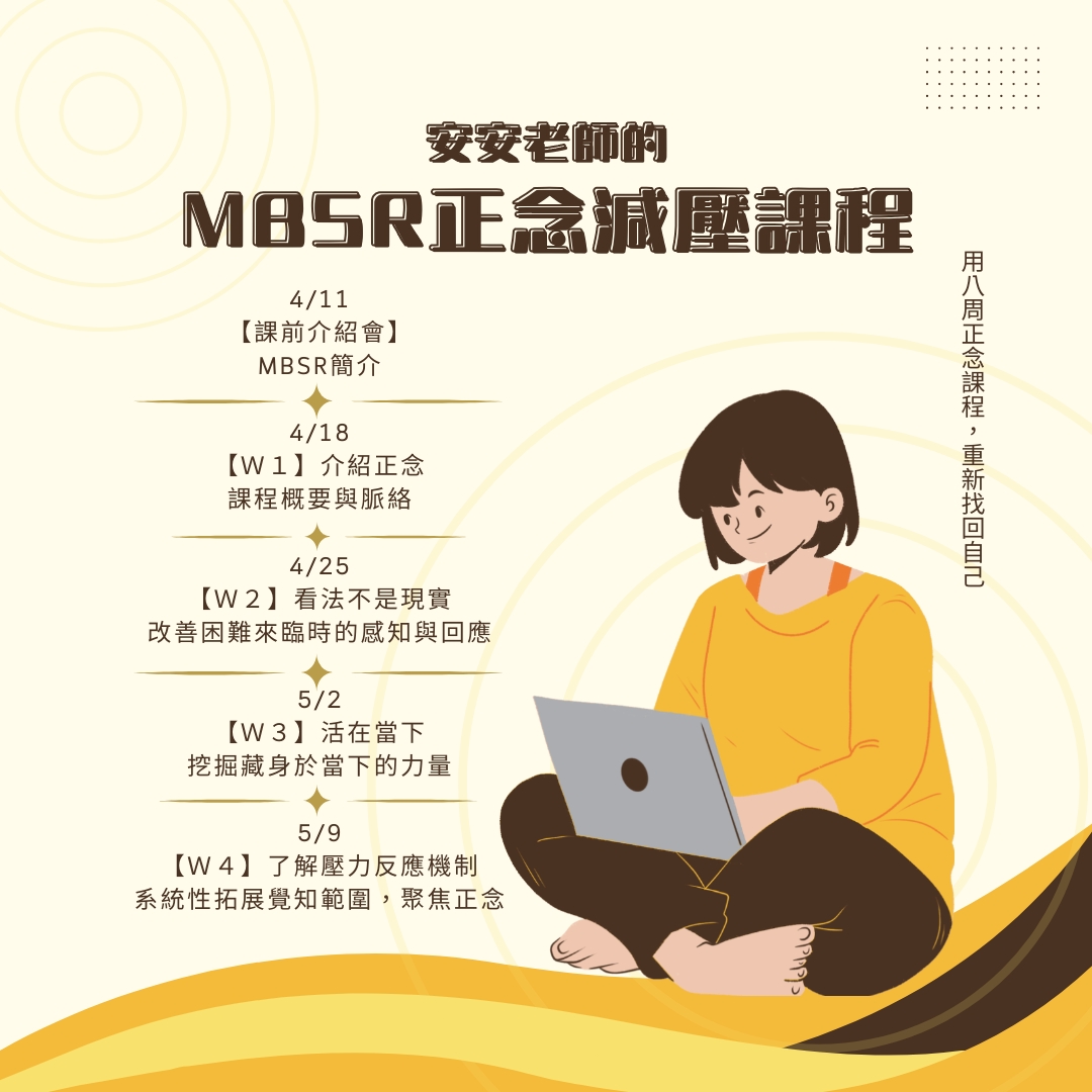 - 「課前介紹會」為必修環節,目的是協助您了解課程全貌、體驗正念練習方法,並釐清課程方向,以確認是否符合您的個人需求。