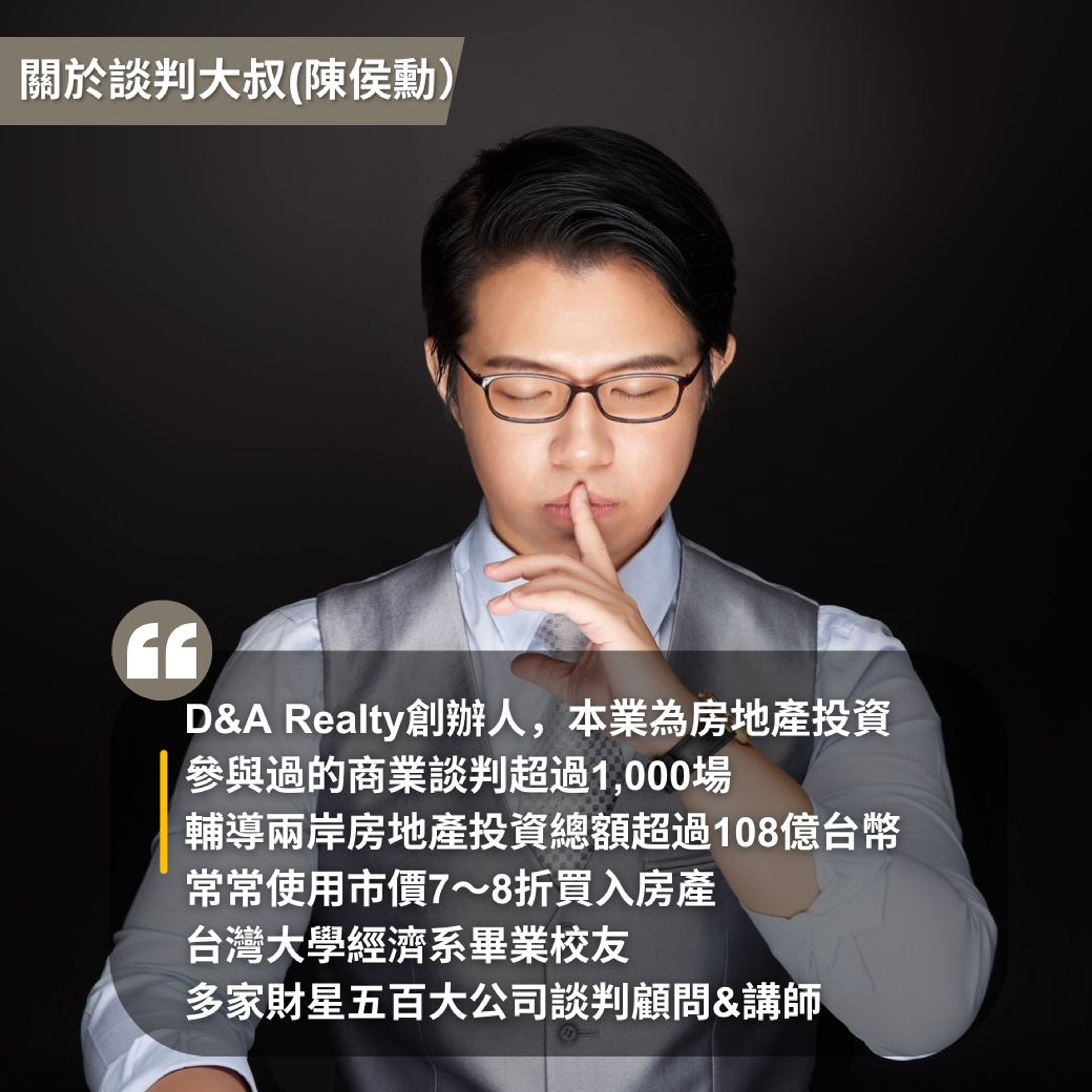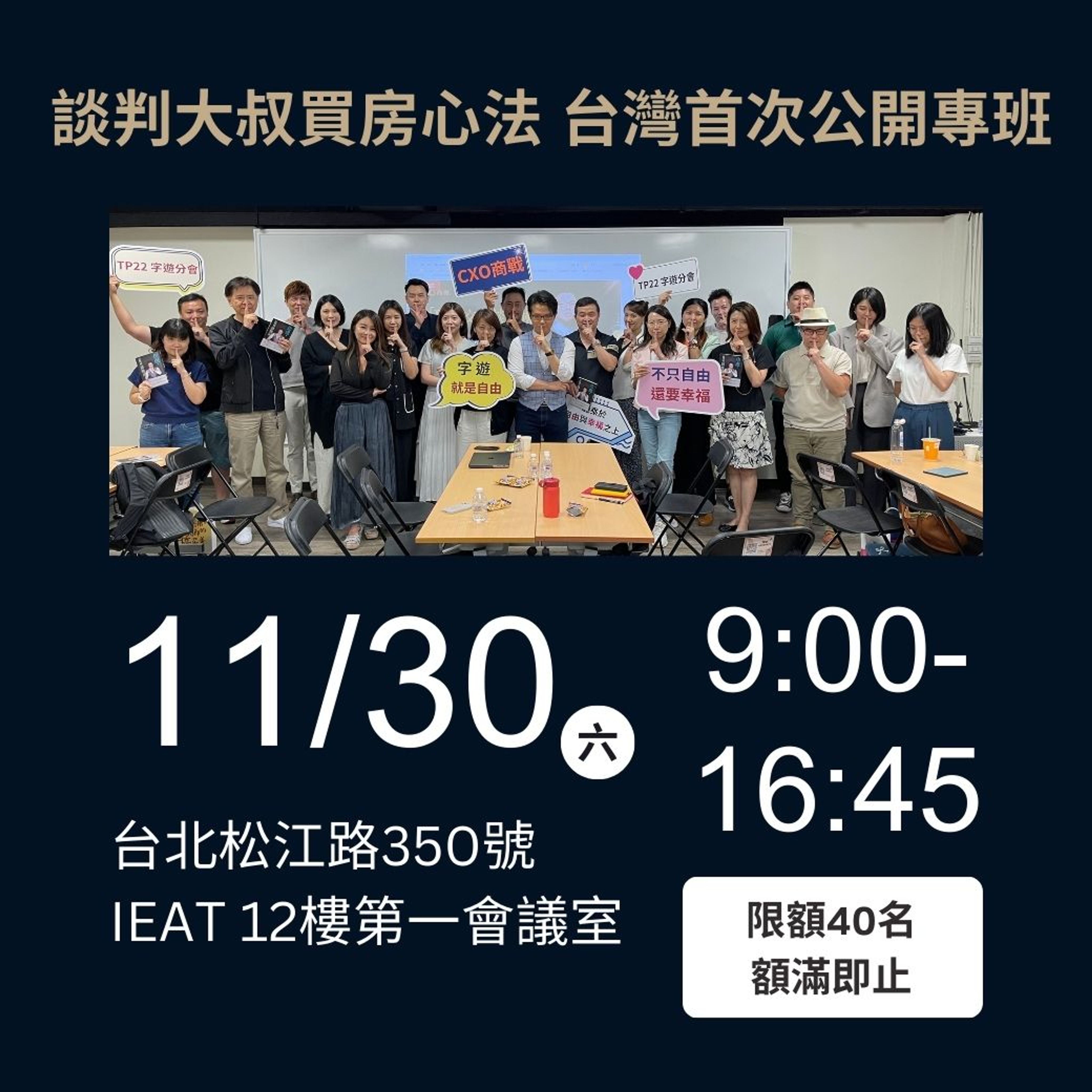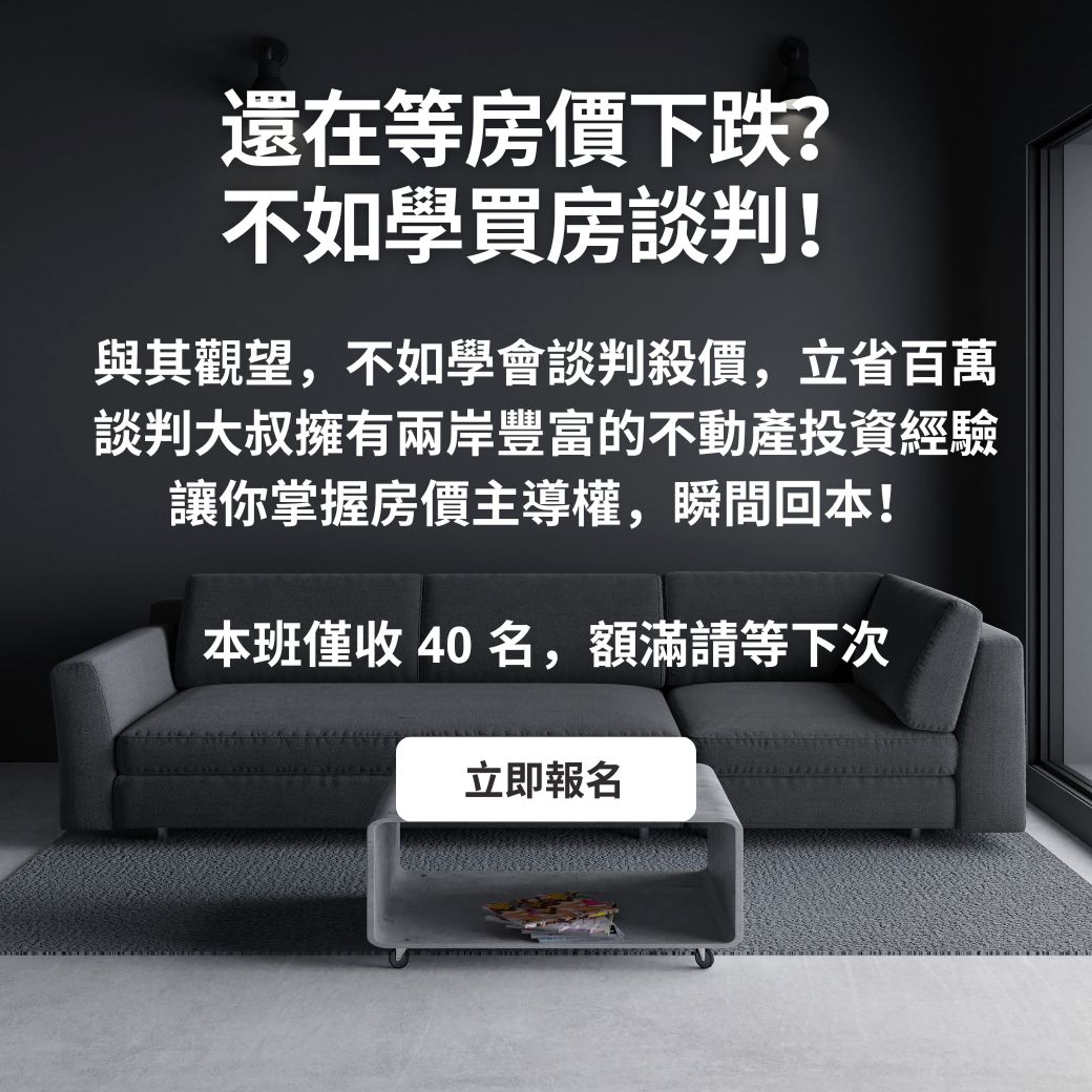 這是談判大叔首次在台開設的房產談判專班,課程尚未上架就有十餘人搶先預約,大家都看到了這堂課程能為他們所帶來的潛在收益。不必再自行摸索,就能學習談判高手的思維與技術,名額有限,錯過本班請等明年。