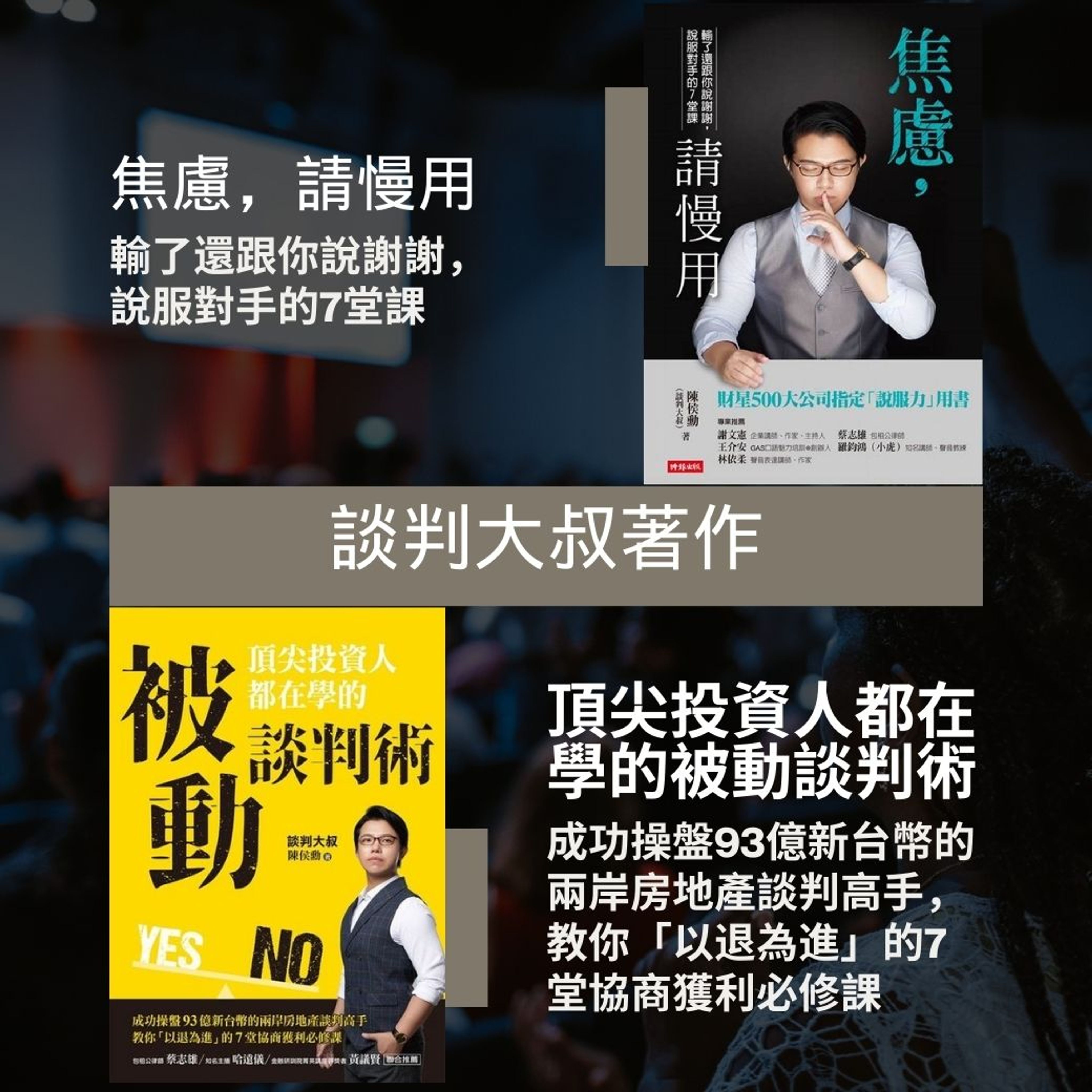 你不需要具備出色的口才,只要能讀懂賣家的焦慮,在壓力下保持冷靜,就能為自己爭取最佳利益。陳侯勳老師將幫助你突破「談判」 =「說服」的盲點,並保證你在一年內可以賺回學費(無效退費保證條款詳見老師出具的承諾書)。